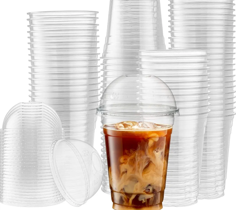 Vasos transparentes de 500 ml con tapa domo antiderrame, resistentes y aptos para alimentos. Su cierre seguro evita fugas, ideales para postres, snacks y bebidas. Fáciles de transportar, perfectos para uso en casa, fiestas o negocios.
