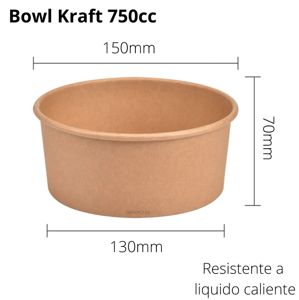 50un Bowls Kraft Con Tapa Plástica Envases 750cc Color Beige