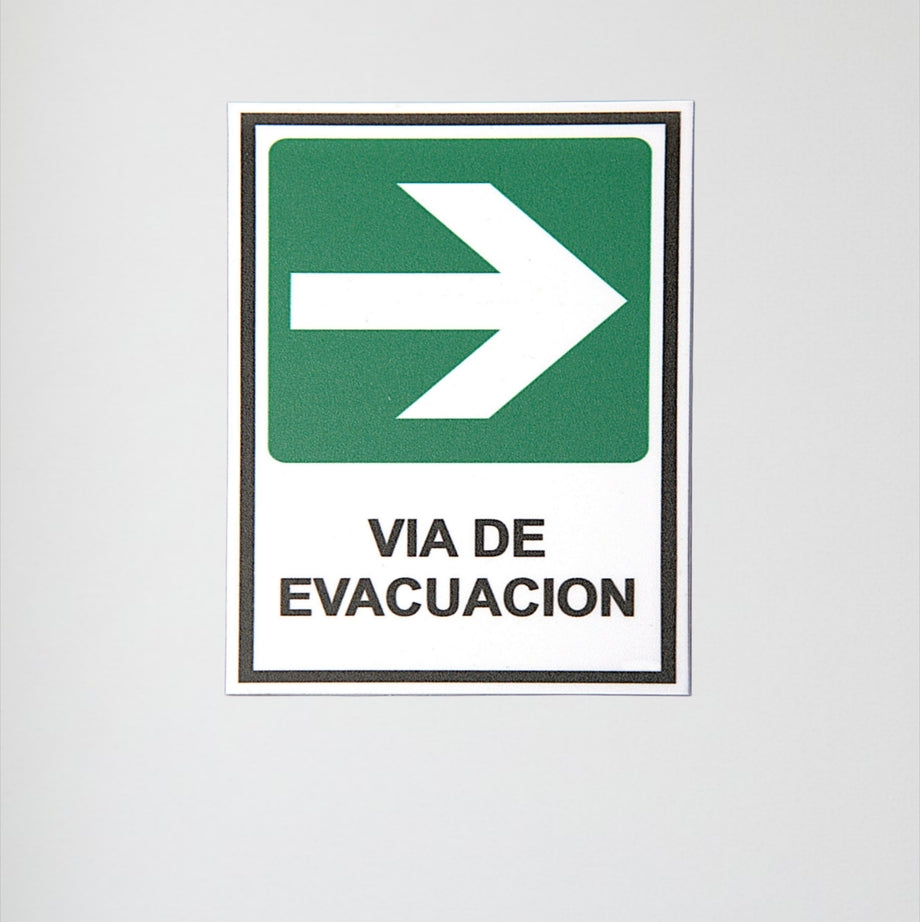 Señalética de seguridad que indica la dirección que se debe seguir para evacuar un lugar en caso de emergencia.