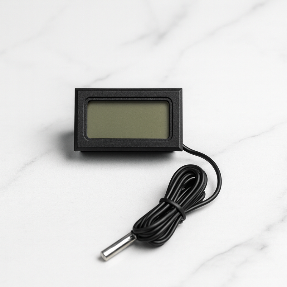 El termómetro digital con sonda de un metro es ideal para medir la temperatura ambiente o el interior de equipos de refrigeración, como frigoríficos, congeladores o neveras. Su pantalla LCD clara y precisa facilita una lectura rápida y confiable.